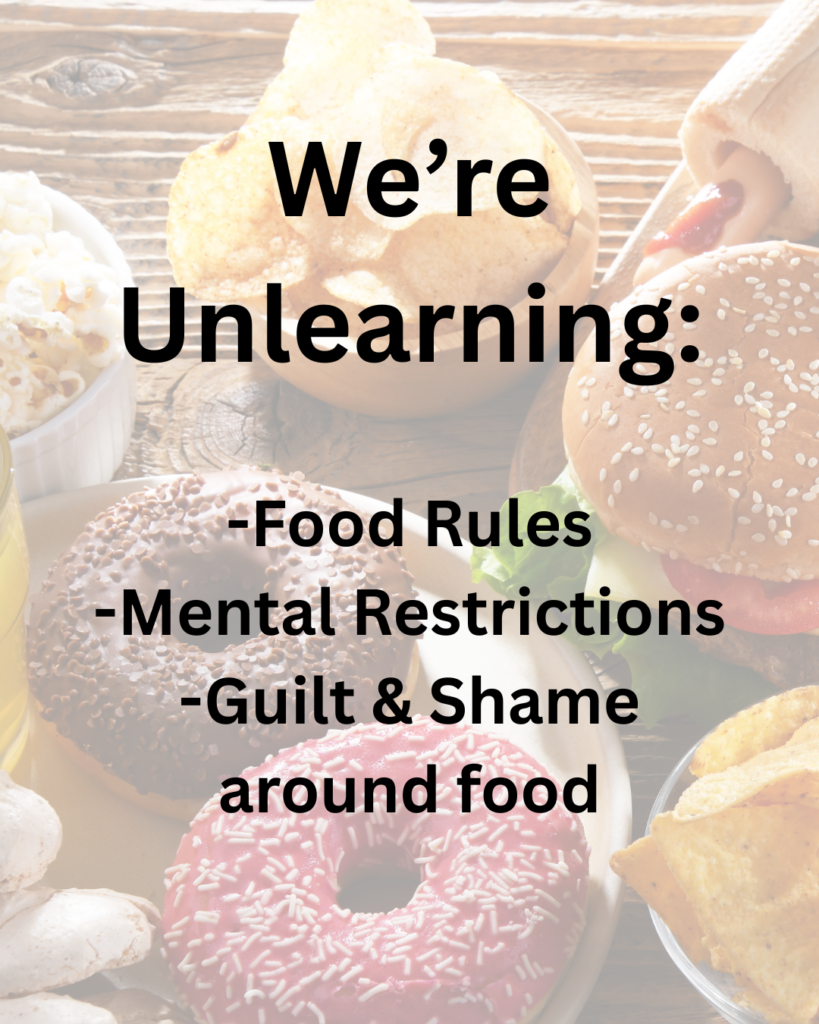 If you’re ready for support learning how to trust your body and feel calm around food again, that’s exactly what I help my clients do in 1:1 coaching. I offer both individual sessions as well as a 6-week nutrition package where we will cover all the topics you need to get you to a more peaceful relationship with food.